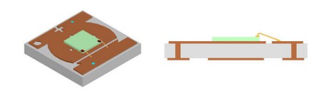 平板型DPC陶瓷基板尽管在LED领域得到广泛应用,但薄膜线路采用的黄光微影技术只能在平板上进行布线,其工艺局限性使得它们不能在陶瓷基板上做出三维密封腔室,无法实现LED功率器件的三维气密封装,满足高气密性、高真空度或惰性气体填充等特殊要求。